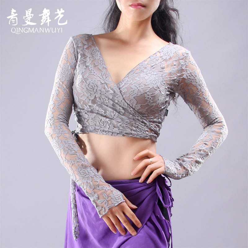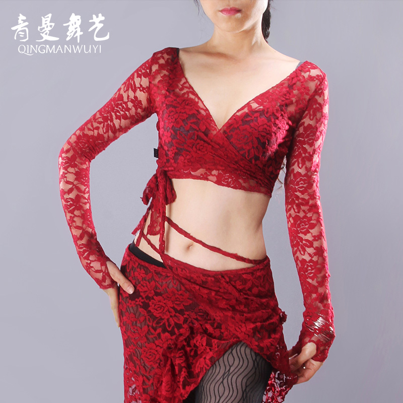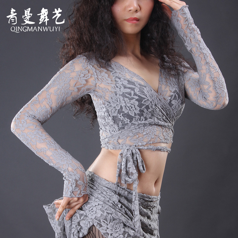 Qingman Dance Art 2020 new belly dance blouses performance practice Costume Lace straps buckle fingers to practice Sexy Woman