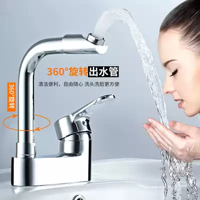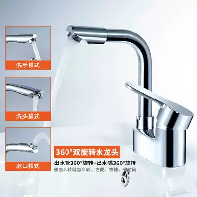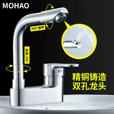 All copper double hole Basin hot and cold faucet bathroom three hole dressing room wash basin basin rotating faucet