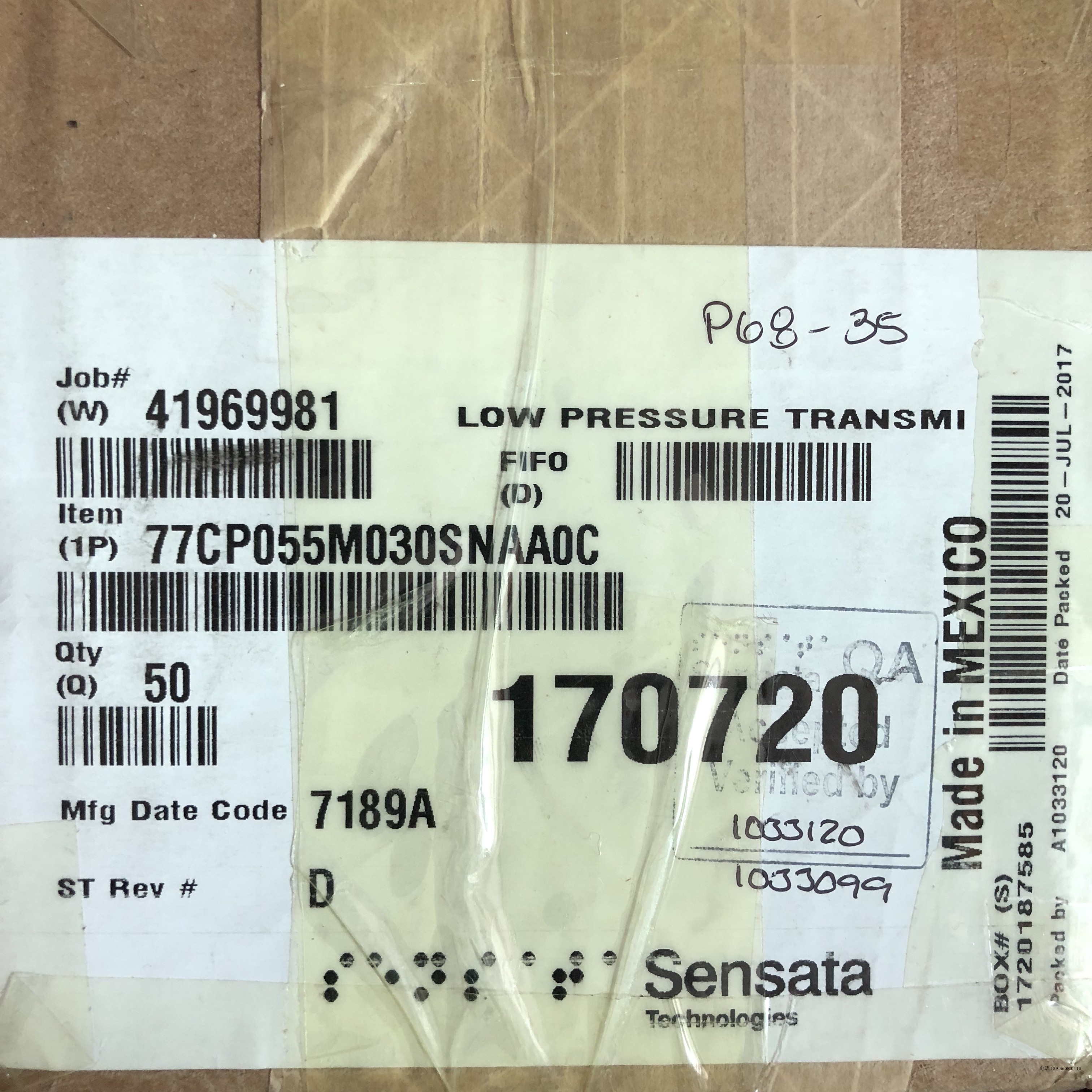 Pressure sensor SENSATA 77CP055M030SNAA0C 0-30BAR 4-20MA