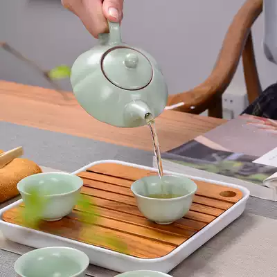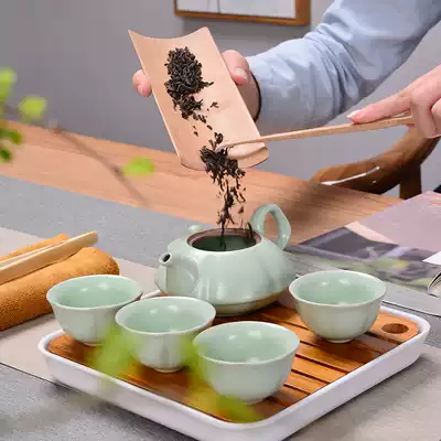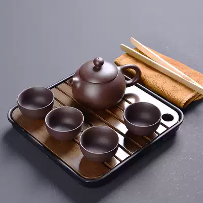 8 pieces of purple sand a pot of 4 cups-small square Brown 8 pieces of pink green small black pot 4 cups-small square teak color 8 pieces of Taiwan Ru kiln black tea 4 cups-small square Brown 8 pieces wooden handle Penguin glass pot 4 Cup