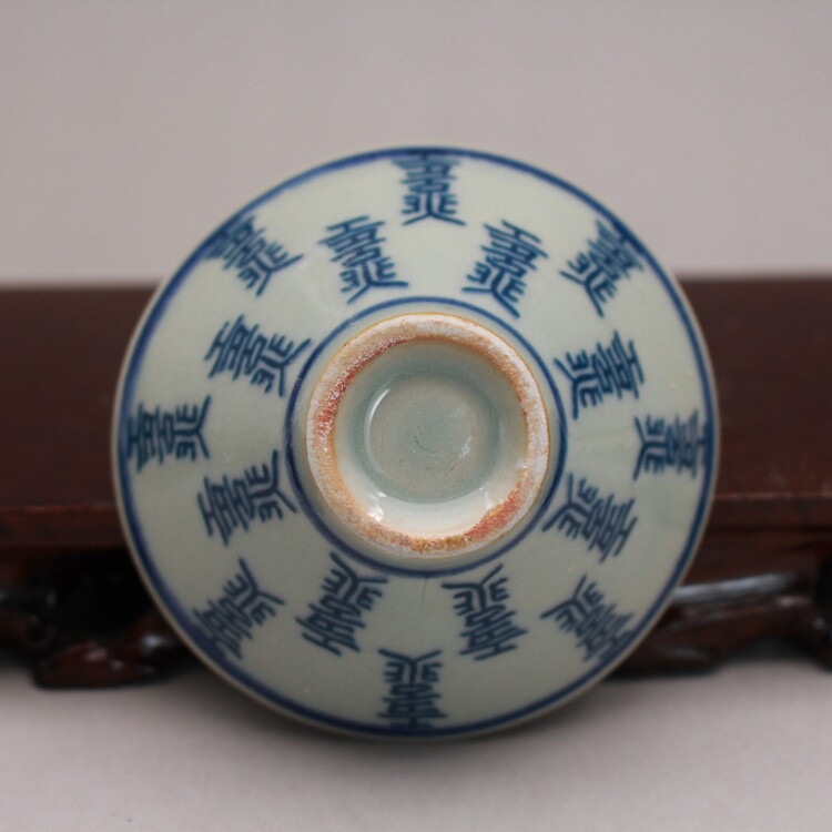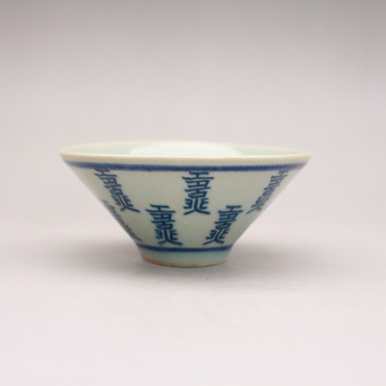 Late Qing folk kiln blue and white auspicious longevity pattern bamboo hat cup tea cup antique antique ceramics antique collection