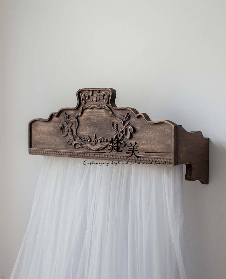 American solid wood bed mantle method Style Fields Garden Solid Wood Sculpture Flower Bed Crown Jean Eugantique Do the old engraving bed mantle curtain head