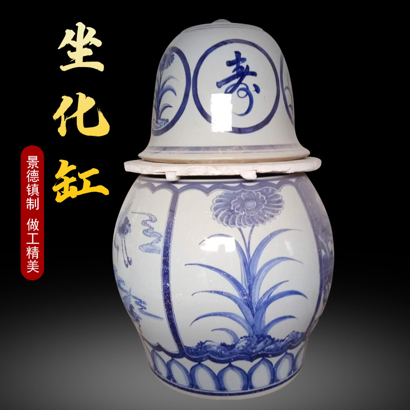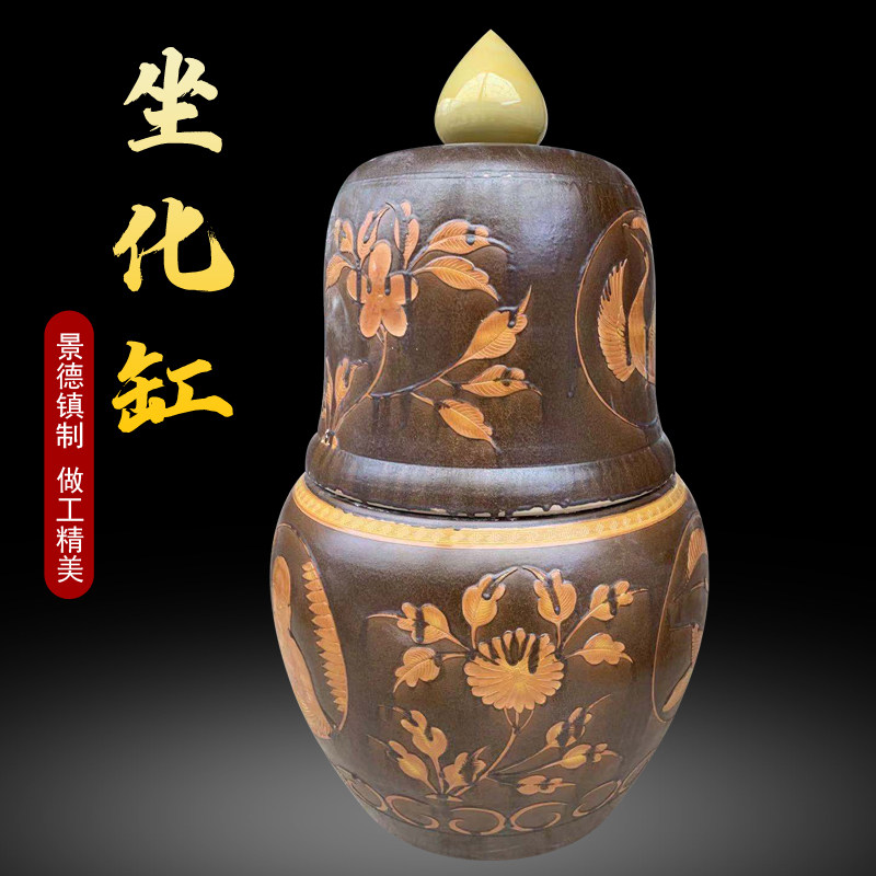 Jiuhuashan Monk sitting cylinder Ceramic sitting cylinder Flesh cylinder Monk's death cylinder Temple Master Feathered cylinder Lotus urn