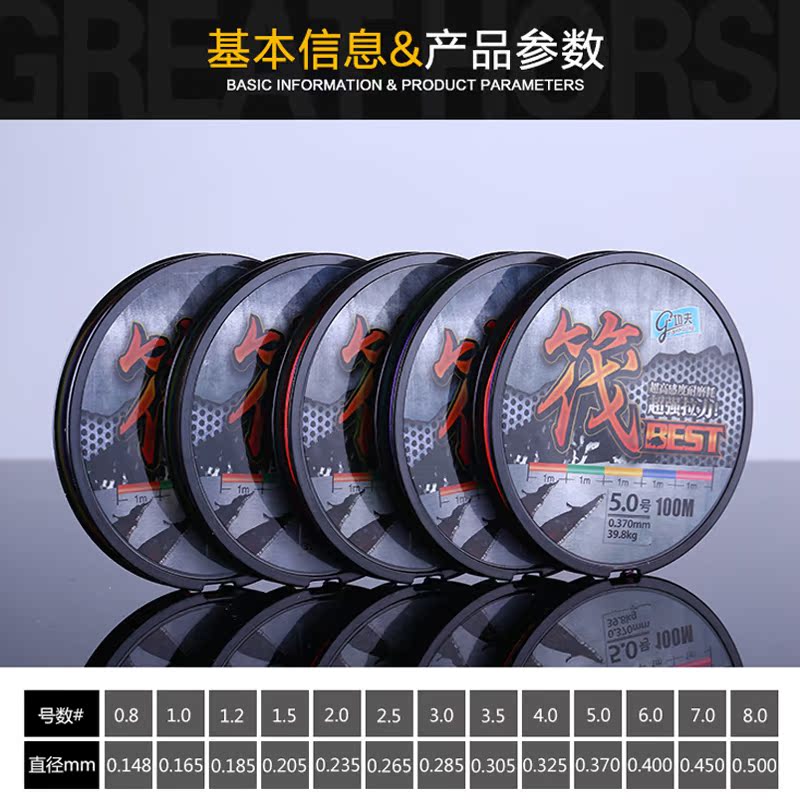 Golden Elephant 2018 New 100 m Vigorous Horsefish Line 8 Woven Five Colorful One-Metre-One-Color Raft Fishing Line Super Pull PE Line