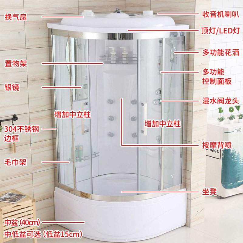 Overall shower room arc sector stainless steel bathroom glass partition one-piece make-up room Home bath bath room