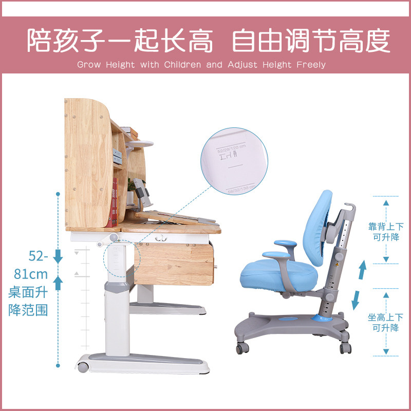 Dr. Guangming Children's Study Table Student Solid Wood Liftable Desk Children's Home Children's Writing Desk and Chair Set