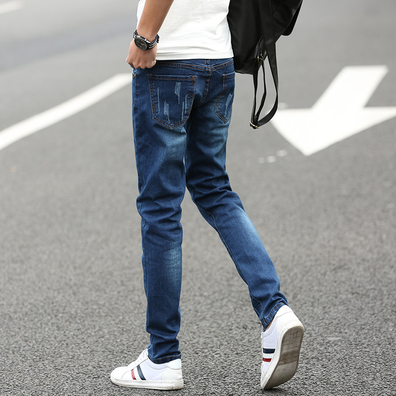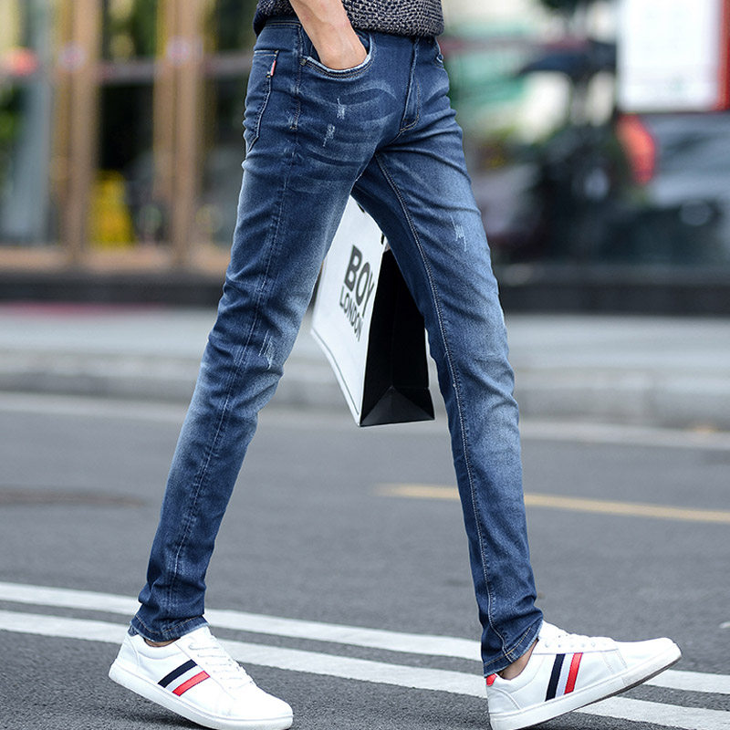 Summer new jeans men's Korean slim fit trend smoke pipe pants black men's casual stretch wild pants