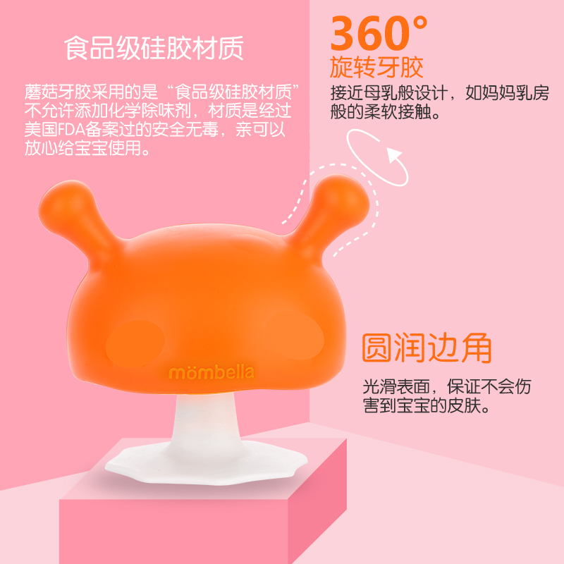 American Mom Belle Momella Small Mushroom Teether Baby Teething Stick Baby Biting Gel Silicone Soft Boilable