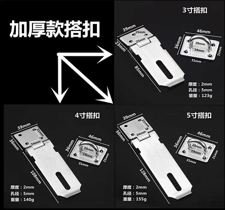 304 thickened stainless steel door lock buckle buckle old Ming fitting door lock door bolt anti-theft lock plate wooden door nose