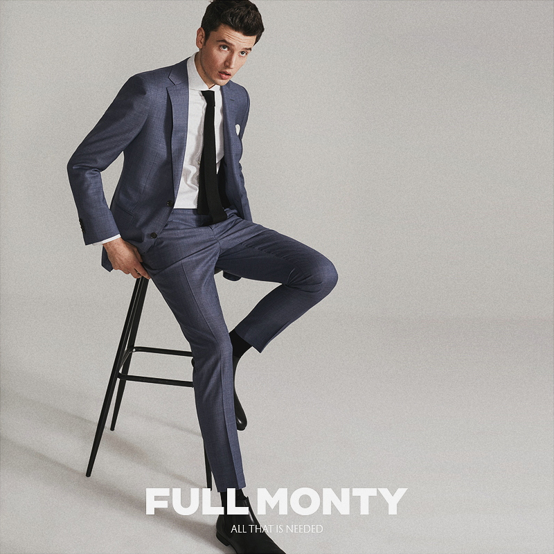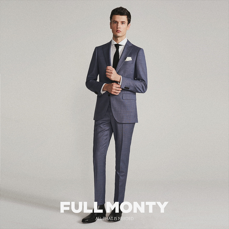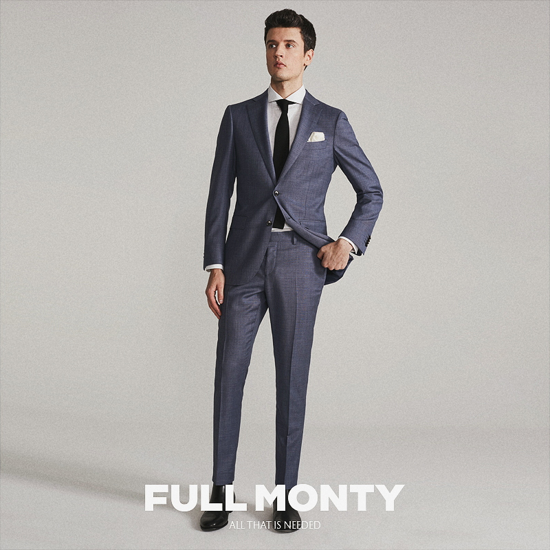 FULL MONTY men business dress panties blue shark skin casual tube coat suit pants