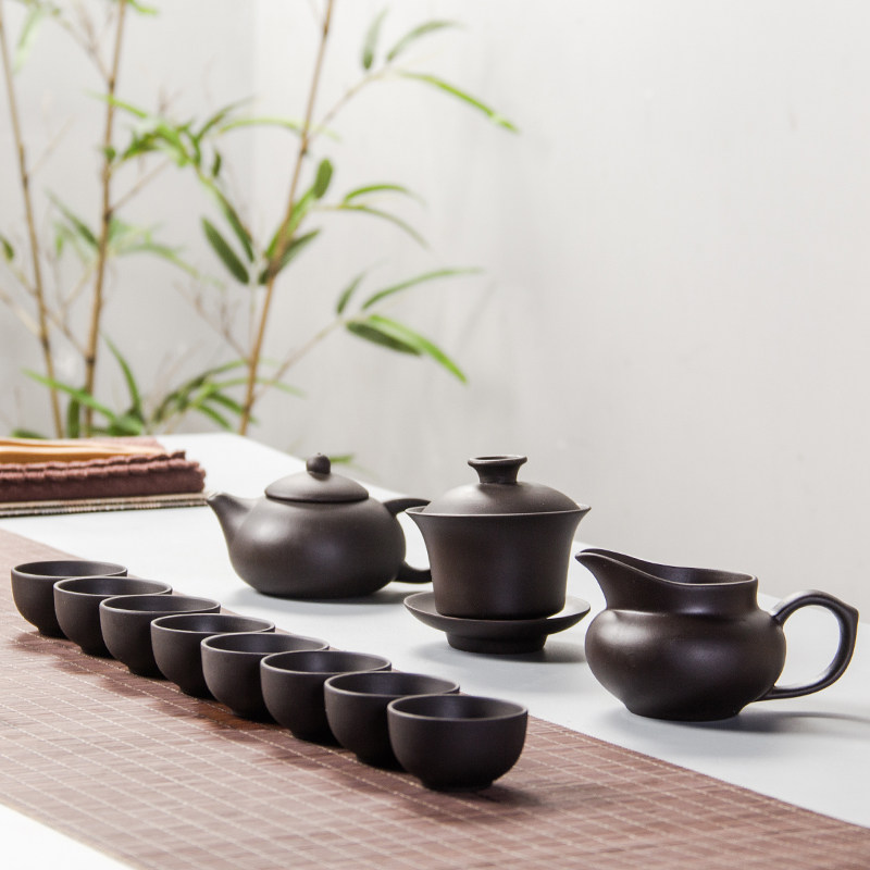 All black purple sand tea set All purple purple sand tea set vermilion inner white purple sand tea set All black inner white purple sand tea set raw ore All black purple sand covered bowl set raw ore All black purple sand teapot set raw ore vermilion purple sand covered bowl set raw ore