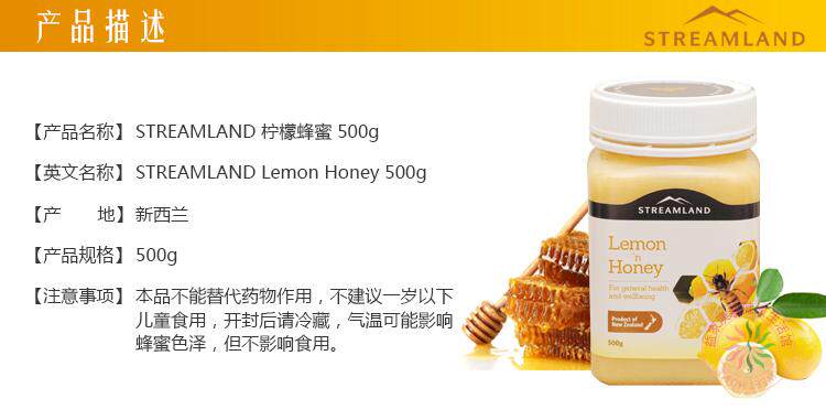 New Zealand imports Streamland Lemon Honey Vitamin C naturally nourishes Lemon Honey 500g