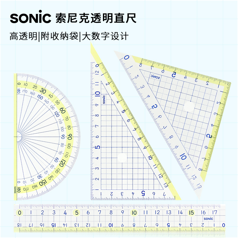 Japan SONIC Sonik transparent square eyes Ruler Triangle Ruler semicircle ruler suit students with drawing