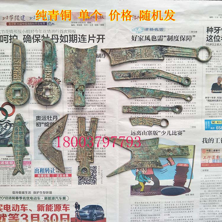 A set of knife coins, a set of copper alloy ten emperor coins, a set of pure copper and pure bronze knife coins are randomly distributed