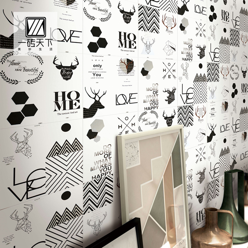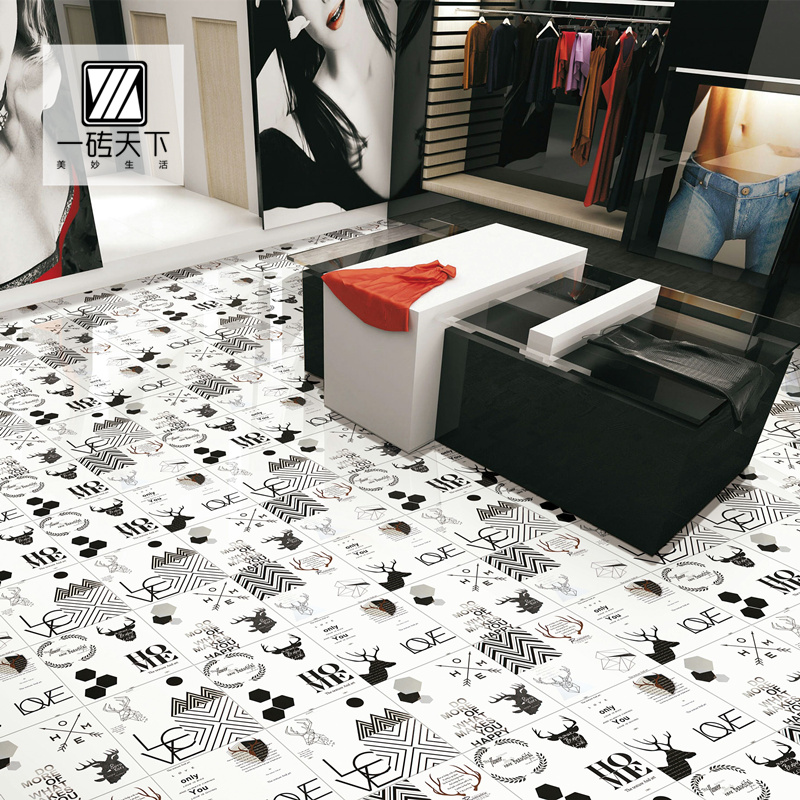 Nordic art flower brick 400 x 400 personality mix black and white minimalist tile restaurant mall floor tiles Kitchen Wall Brick-Taobao