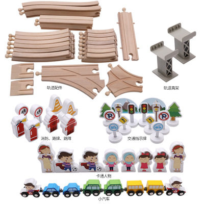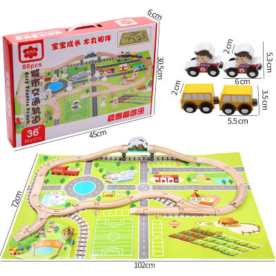 Wood Pellets City Rail Transit Scene Suit Wooden Building Blocks Children Puzzle Train Tracks Assembly Toys