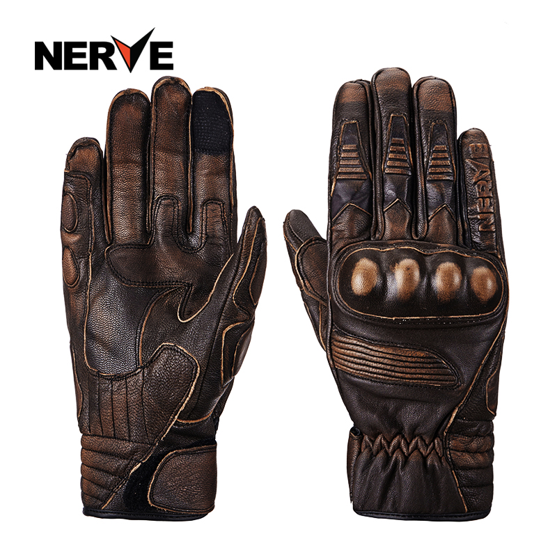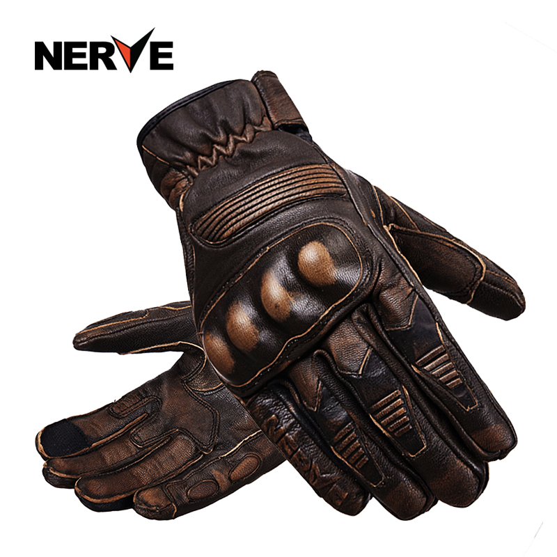 NERVE Nefertiv Locomotive Gloves Men And Women's Four Seasons Sheep Leather Retro Locomotive Racing Rider riding anti-fall touch screen