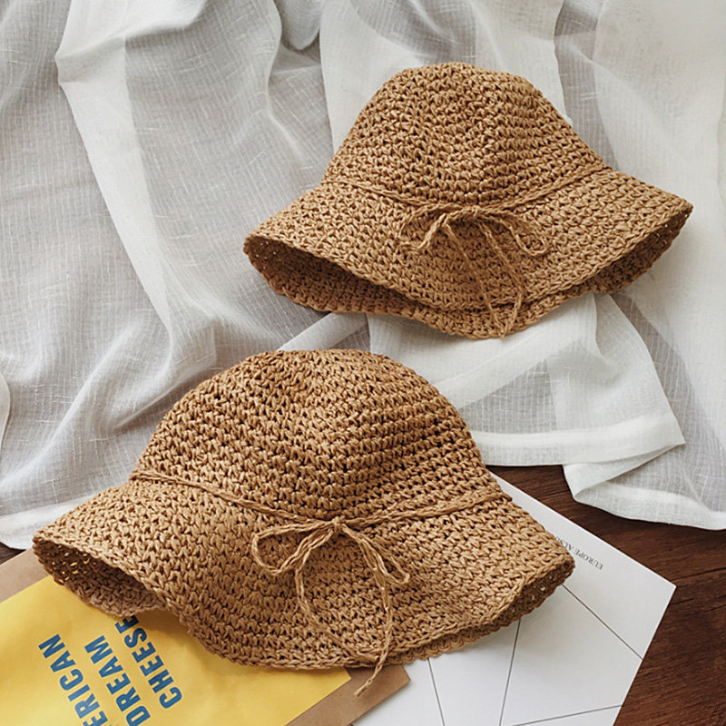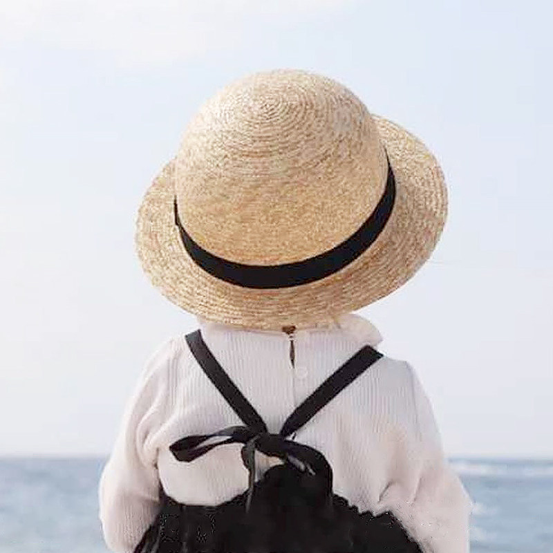 Korean children straw hat girls shade beach hat sunscreen fisherman hat spring summer seaside vacation hand-woven hat