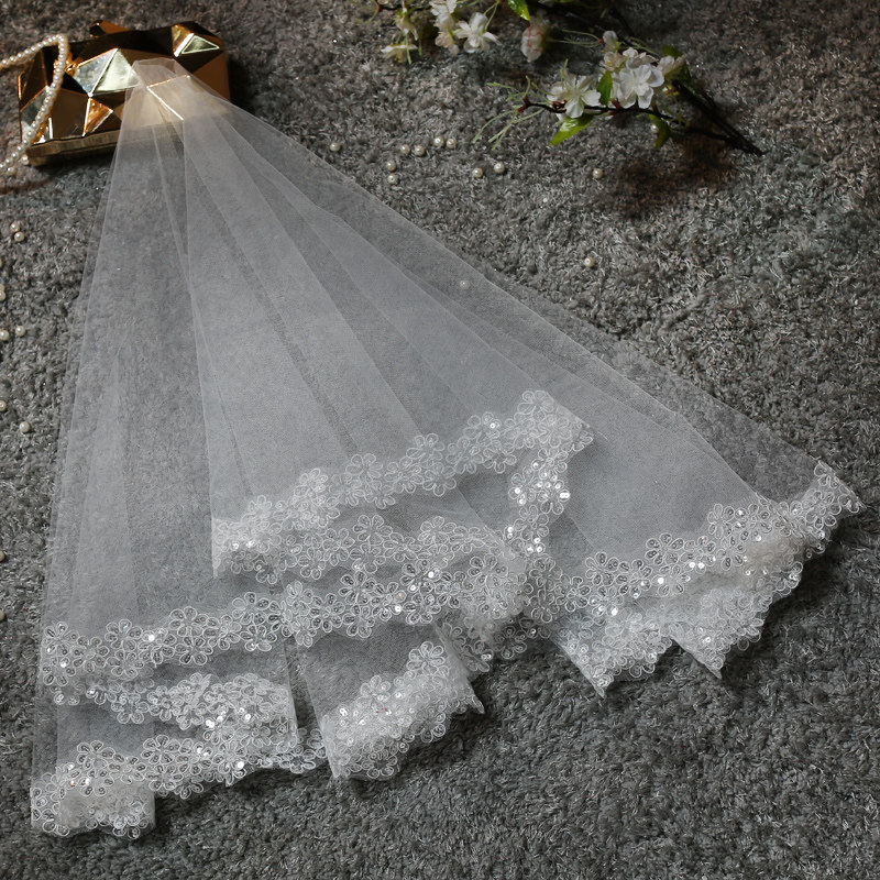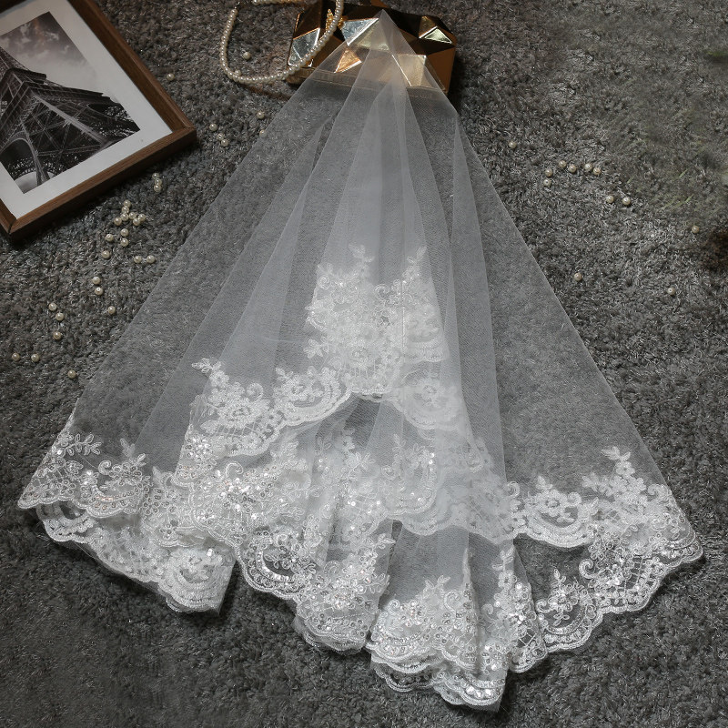 Bridal head yarn Han style lace head yarn short style brief white new wedding wedding dress ultra-long head yarn