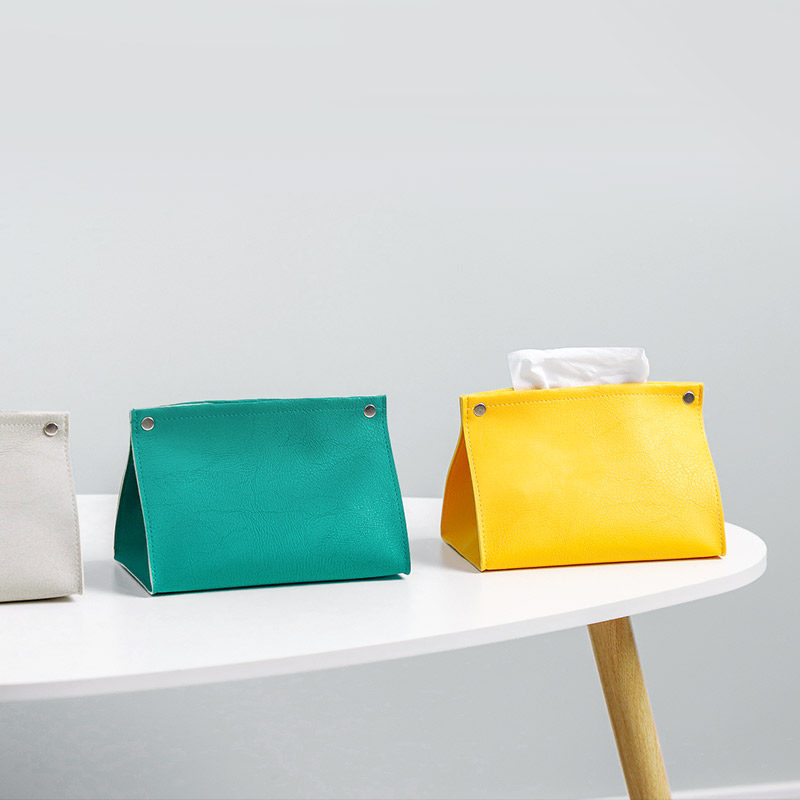 MOM leather tissue box Simple Nordic ins yellow powder removable toilet paper bag Tissue bag Living room leather removable toilet paper bag cover fabric