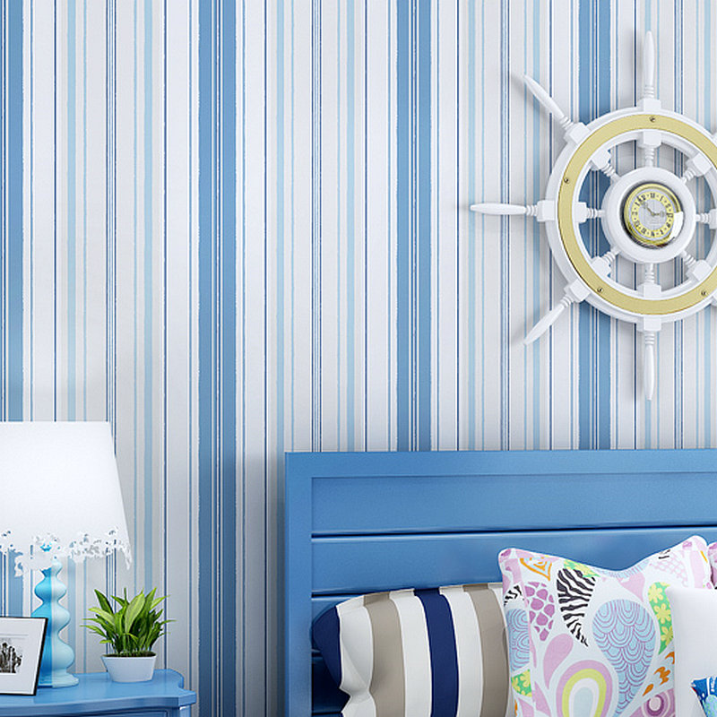 Mediterranean blue vertical stripe wallpaper self-sticker dormitory bedroom background wall decoration modern minimalist Wallpaper self-adhesive