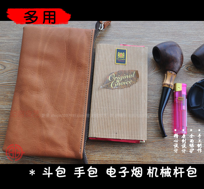 Real leather Tobacco Bucket Baotou Layer Cow Leather Mobile Phone Bag Mechanical Lever Cover Portable Pure Bull Leather Handbag bracelet Tobacco Bucket bungalow