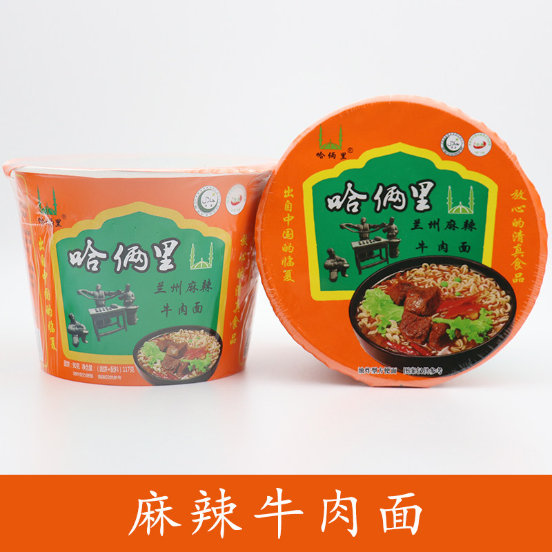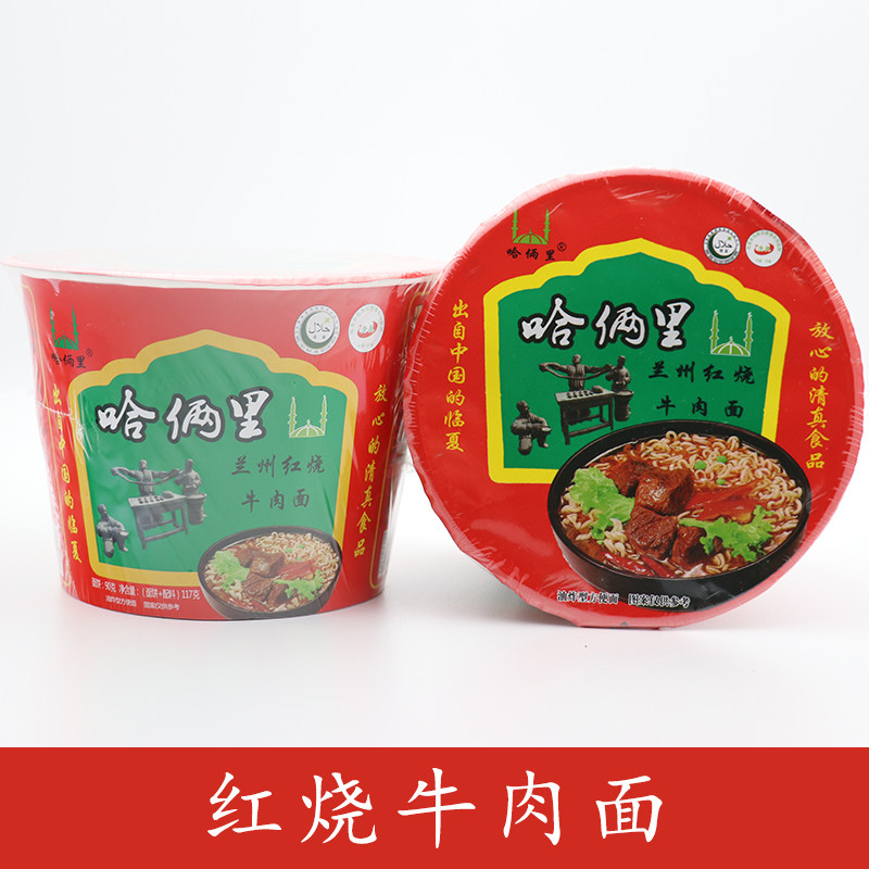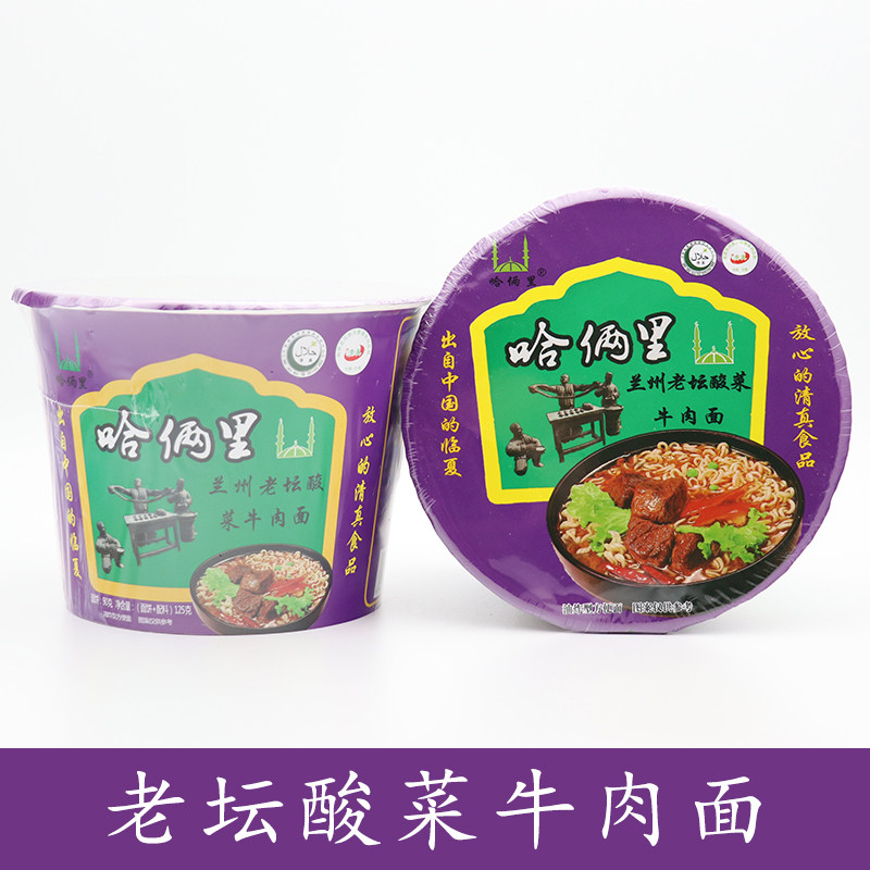 Halal food Linxia Hajiangli instant noodles Whole box of 12 barrels instant noodles Braised beef noodles Sauerkraut spicy barrel noodles