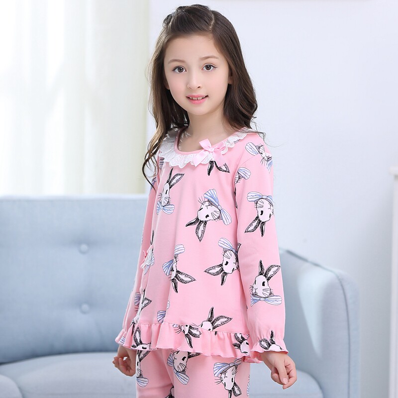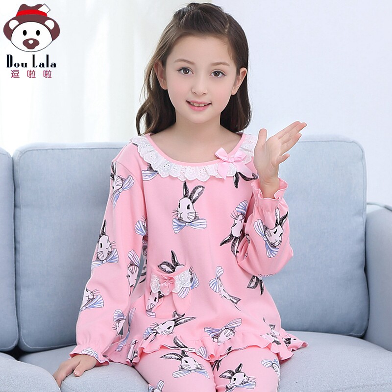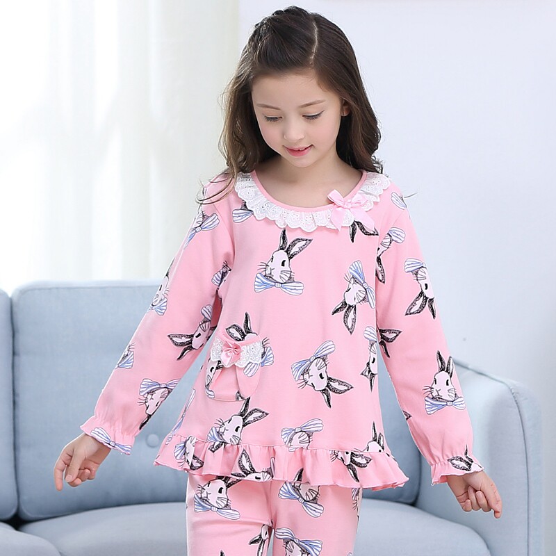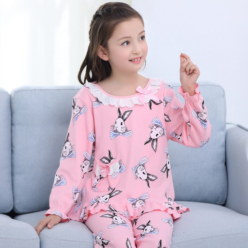 Children's pajamas girls spring and autumn pure cotton suit long-sleeved baby middle-aged and older children princess girls home clothes summer