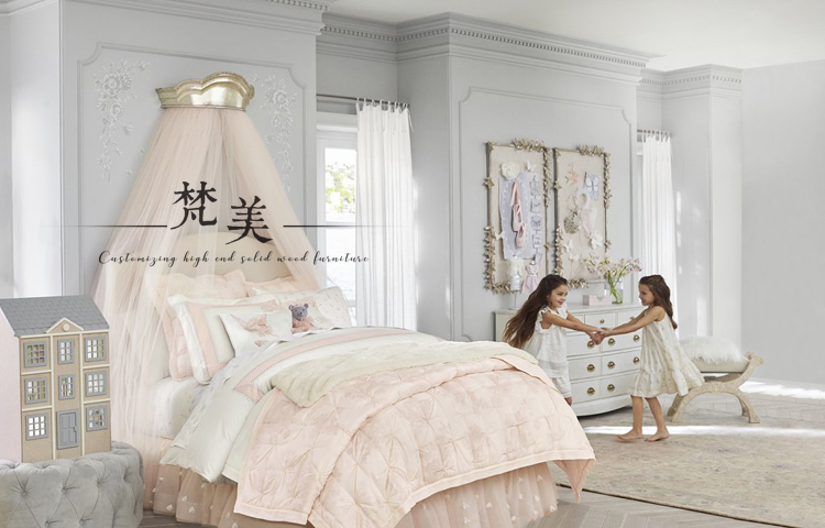 European bed curtain frame American solid wood carving Princess room decoration yarn curtain frame French court dream bed curtain crown
