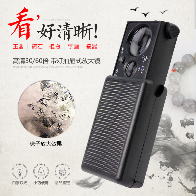3060 times (double light source-jewelry antique) drawer type 30-60 times (with LED lamp-jade stamp) heart-shaped gift box 60 times (double light source-appreciation calligraphy and painting) send storage bag