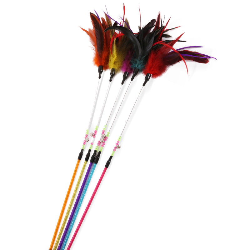 Pet Kitty Toy Cat Supplies Color Turkey Feather Tease Cat With Cat Stick Bell Infant Orange Cat Fairy Fighting Cat Stick