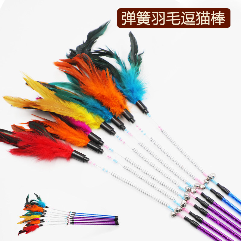 Spring feather teasing cat with no spring feathers to tease the cat sticks