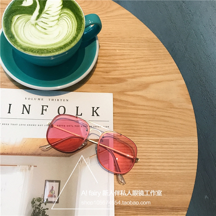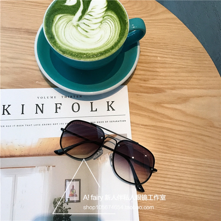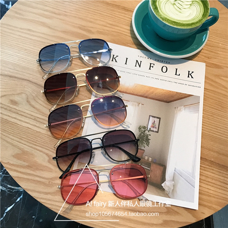 2018 new sunglasses men's square metal double beam big frame sunglasses round face female gradual layer tea light color transparent frame glasses