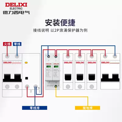 Delixi surge protector Lightning surge protector 4P power supply primary and secondary lightning protection device 2P household