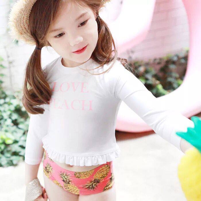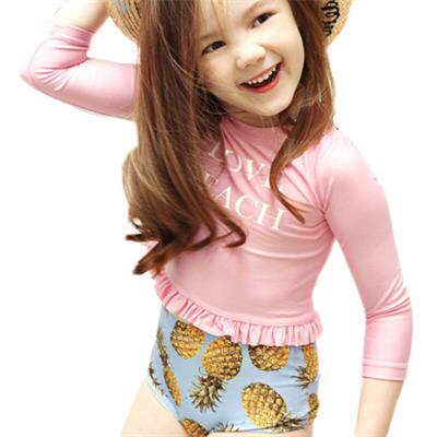 Female Swimsuit Two-piece Women's Swimsuit Long Sleeve Sunscreen Anti-Pink Pineapple Princess Fan Spa White Swimsuit
