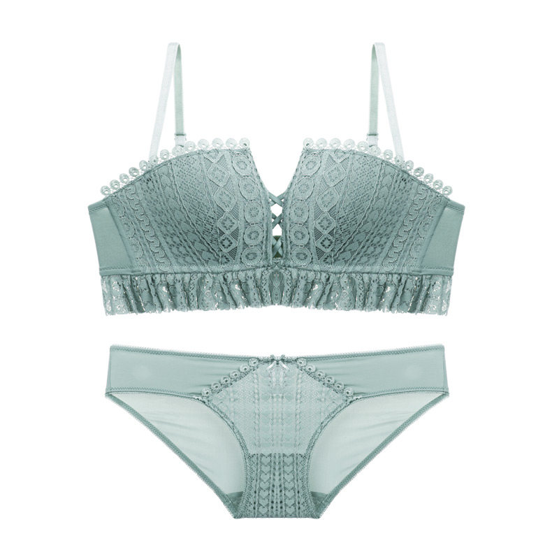 (Designer original)Lace underwear Women's half cup bra gathered small chest sexy non-rimmed closed pair of breast bra