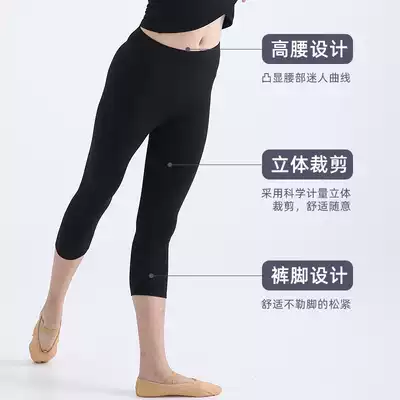 Adult dance pants women's nine-point trousers, ballet body training tight stretch exercise pants key beautiful black