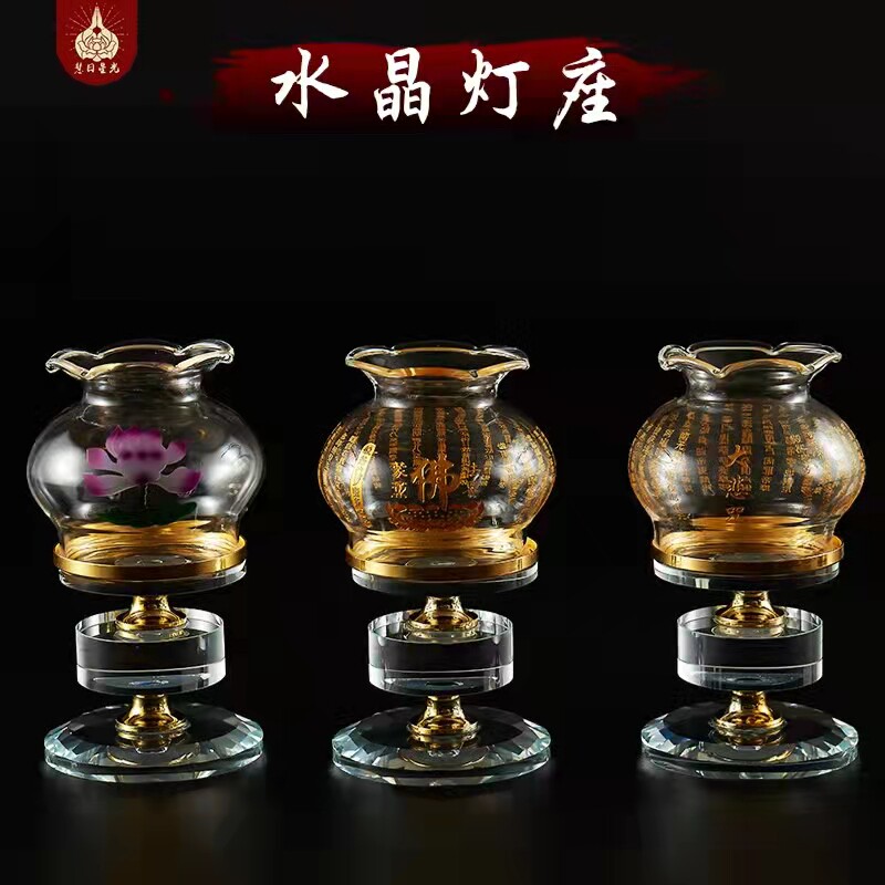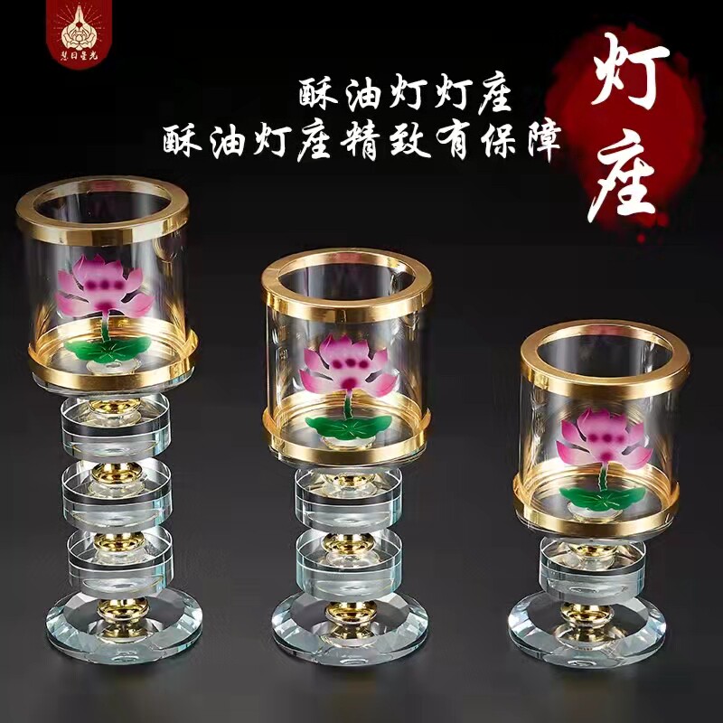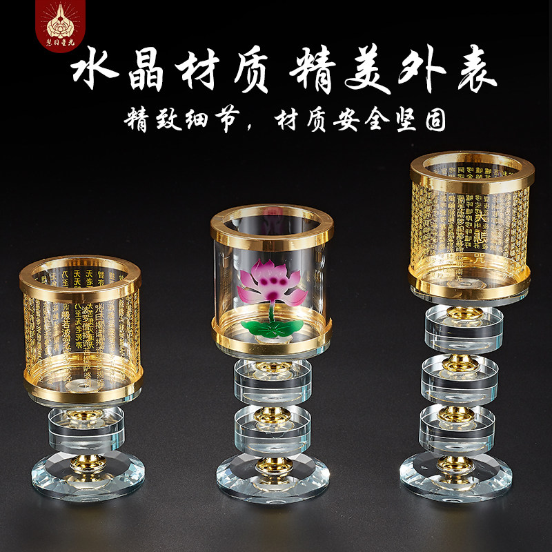 Buddha's former lotus crystal crisp oil lamp holder Home windproof candle holder windproof candle base for indoor and outdoor Buddha lamp swing piece-Taobao