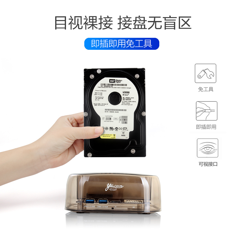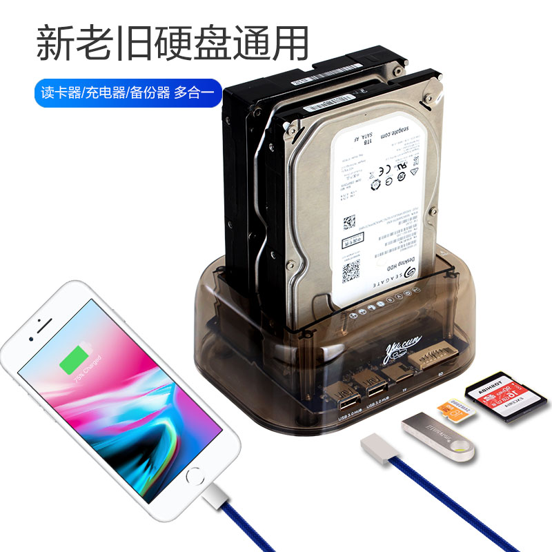 YU CUN carry-on hard disc box USB3 0 double 3 5 serial port 2 5SATA card reader HUB offline clone base