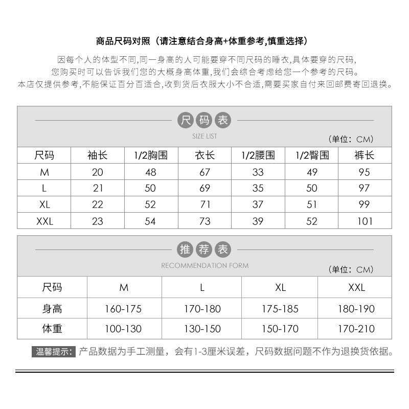 (M code) recommended weight 100-130 catties (L code) recommended weight 130-150 catties (XL code) recommended weight 150-170 catties (XXL code) recommended