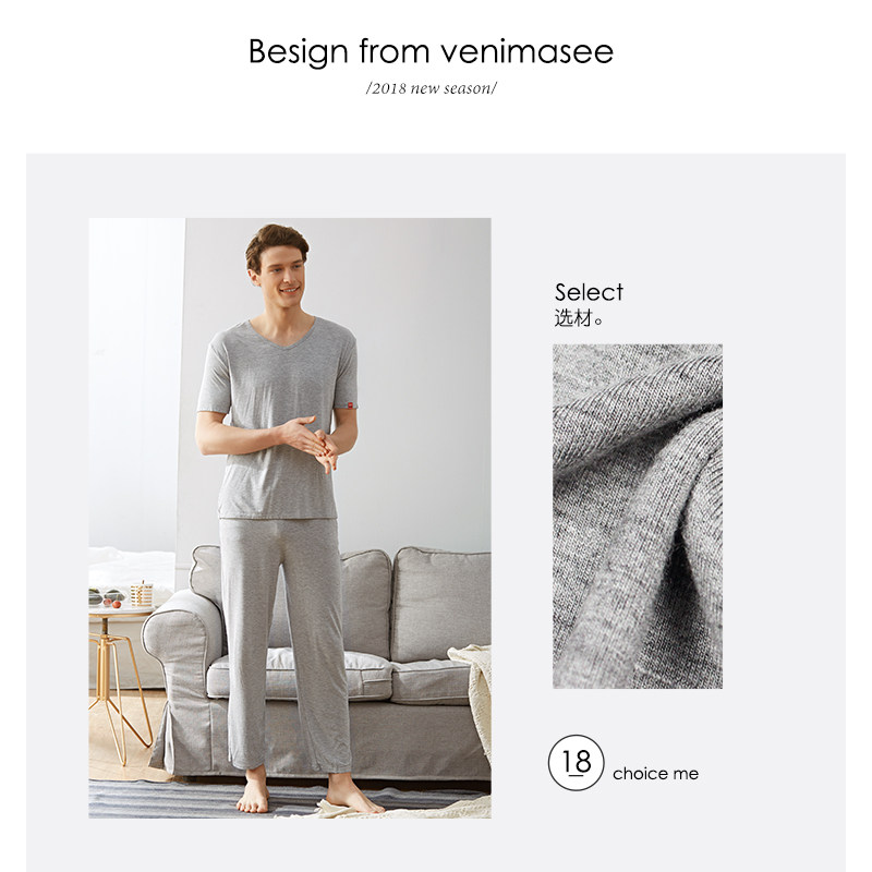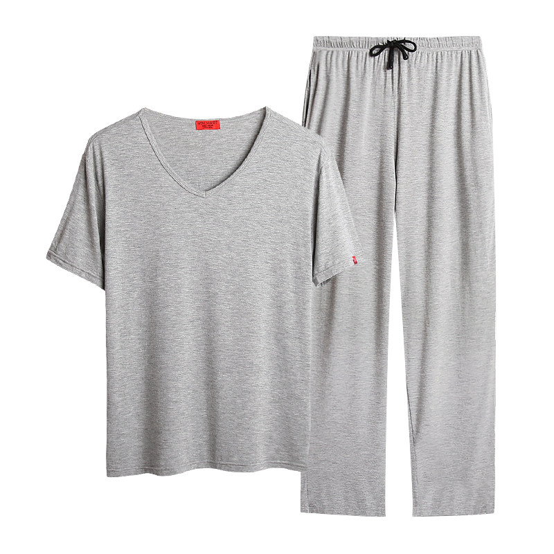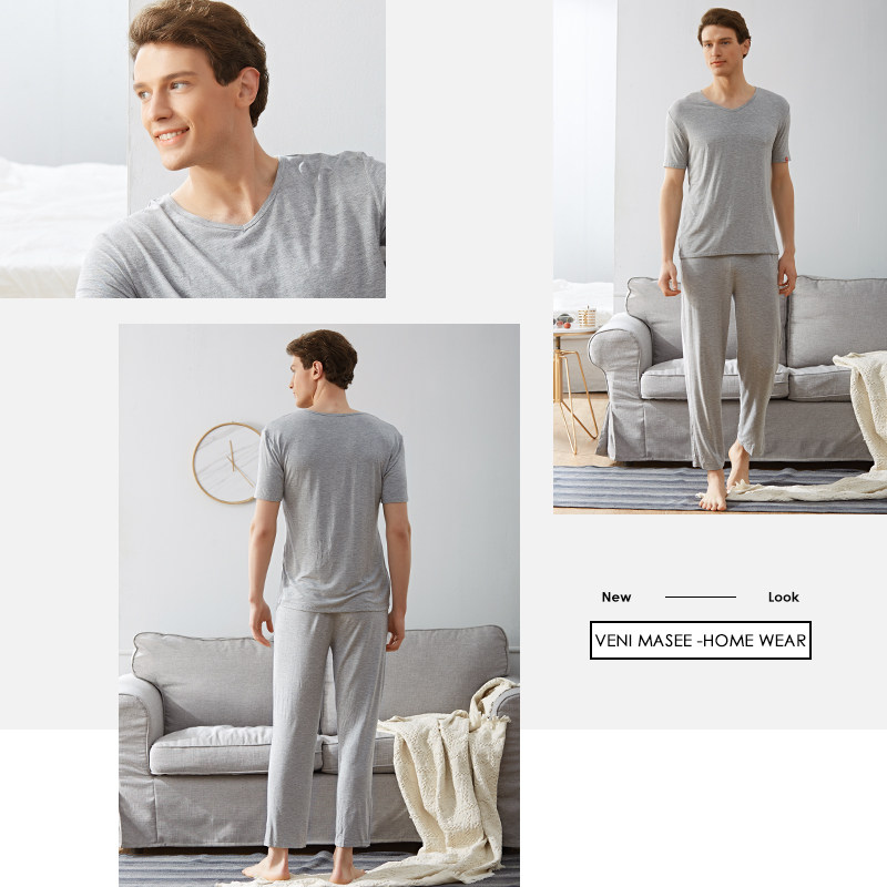 Modal pajamas men's summer short-sleeved European and American simple home clothes can be worn outside trousers suits youth loose home clothes