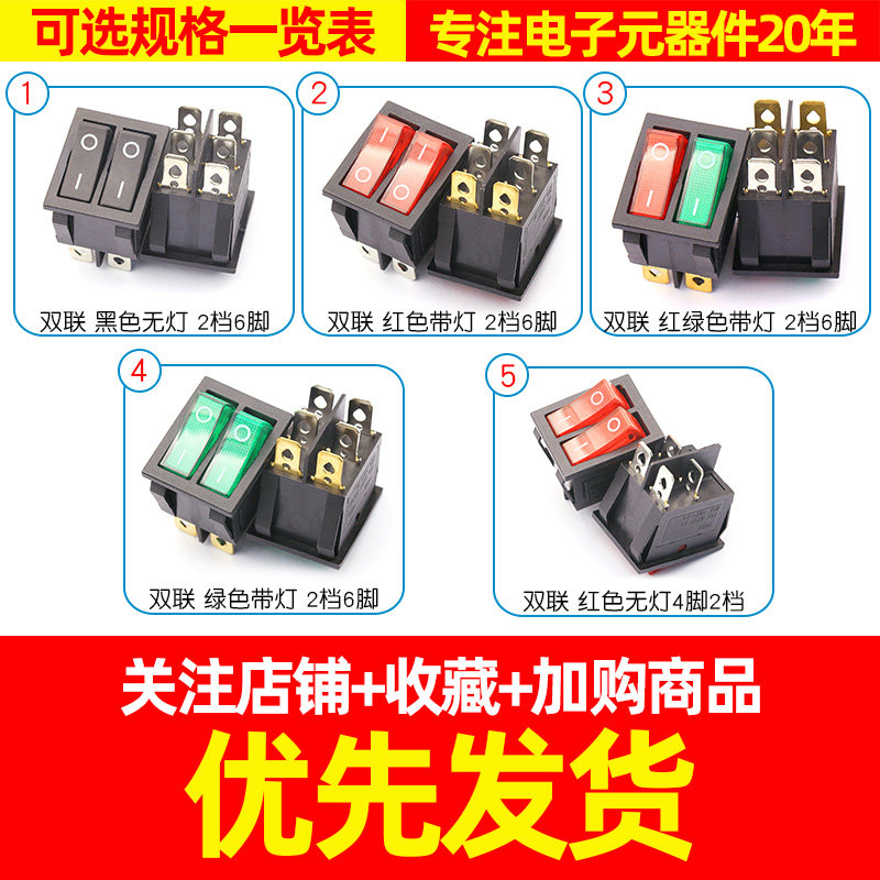 KCD6 duplex boat type switch black 2 stalls 6 feet (1) KCD6 Double libidiship type switch red with lamp 2 stalls 6 feet (1) KCD6 Double-linked boat type switch Red-green