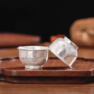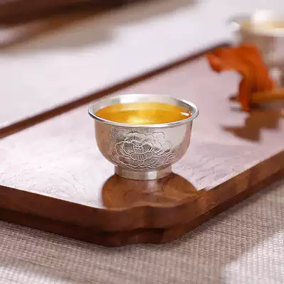 999 Sterling Silver Cup peony cup pure handmade snow silver water cup tea cup household silver tea cup silver wine cup