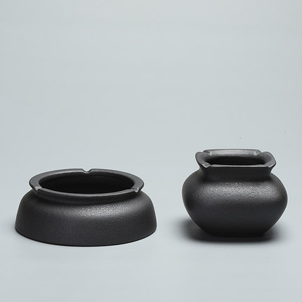 Day-style ceramic smoked ash tray No cover Large black pottery minimalist windproof home living room Creative office coarse pottery