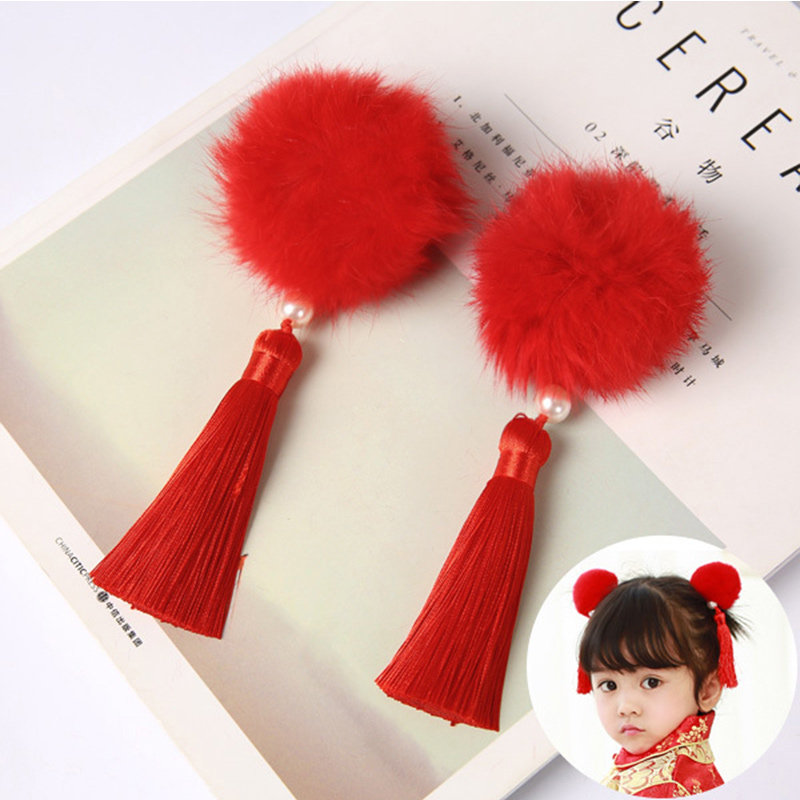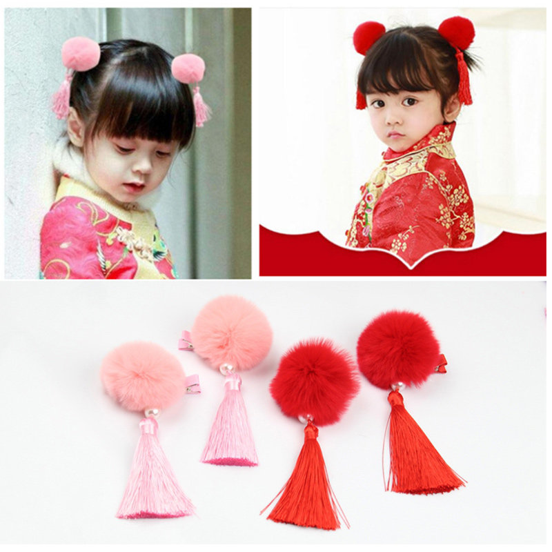 Children's hair accessories girl cute cartoon headdress Chinese style costume cheongsam Princess baby ball tassel hairclip
