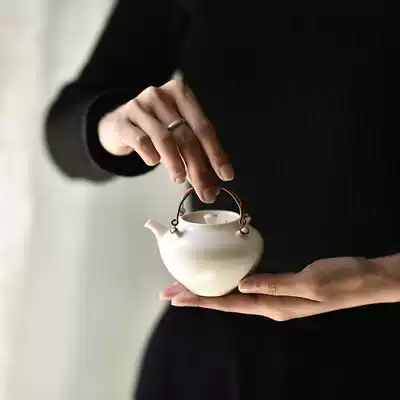 -Taoyuan daily-salt lifting beam teapot cold teapot white porcelain two sizes full hand-made white