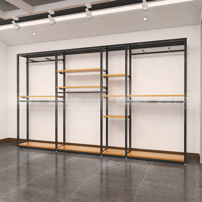 Clothing store display stand Floor-to-ceiling men's clothing shelves High-grade display cabinets Wrought iron paint casual shop design on the wall