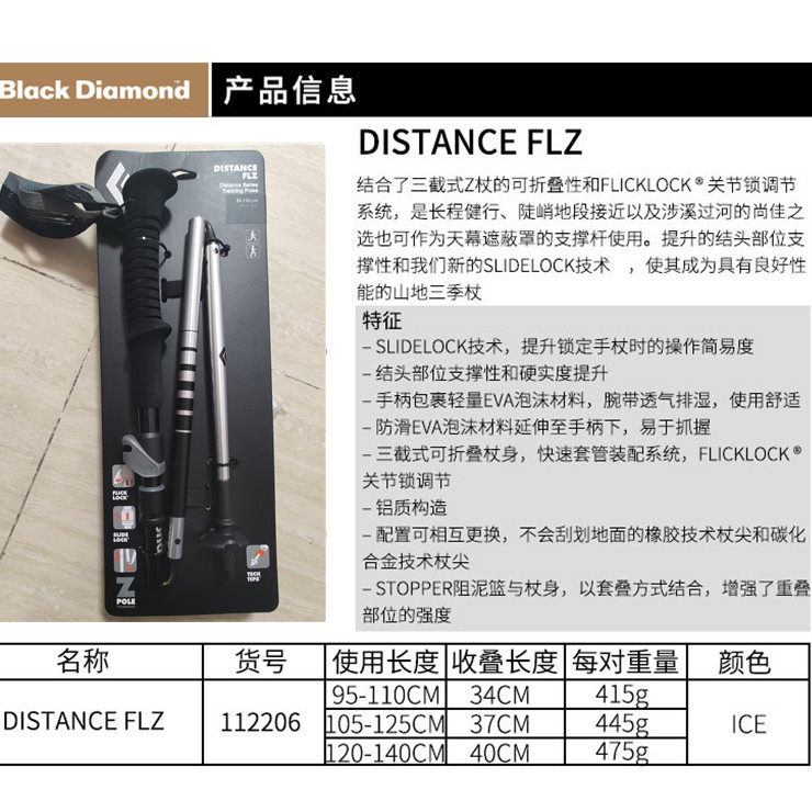 Black Diamond BD Climbing Stick 112206 Aluminum alloy 112207 Folding Z Character Cross-country Running Foot 112208