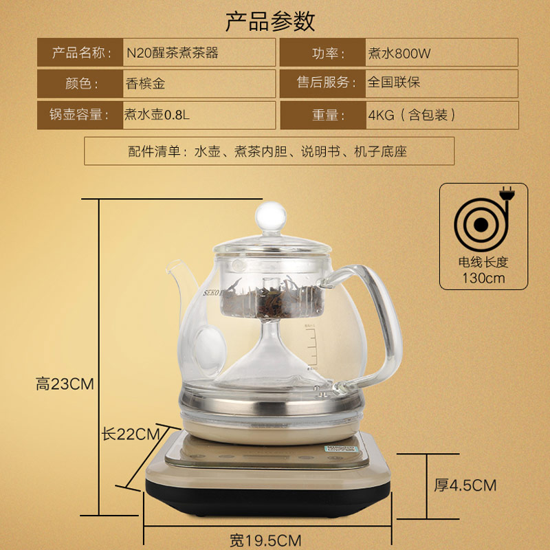 Seko new power N20 intelligent steam wake-up tea tea automatic glass tea maker Spray type black tea pot