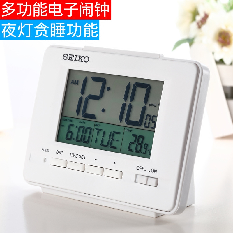 Seiko bedroom bed head LCD multifunctional student clock alarm clock night silence creative simple clock QHL078